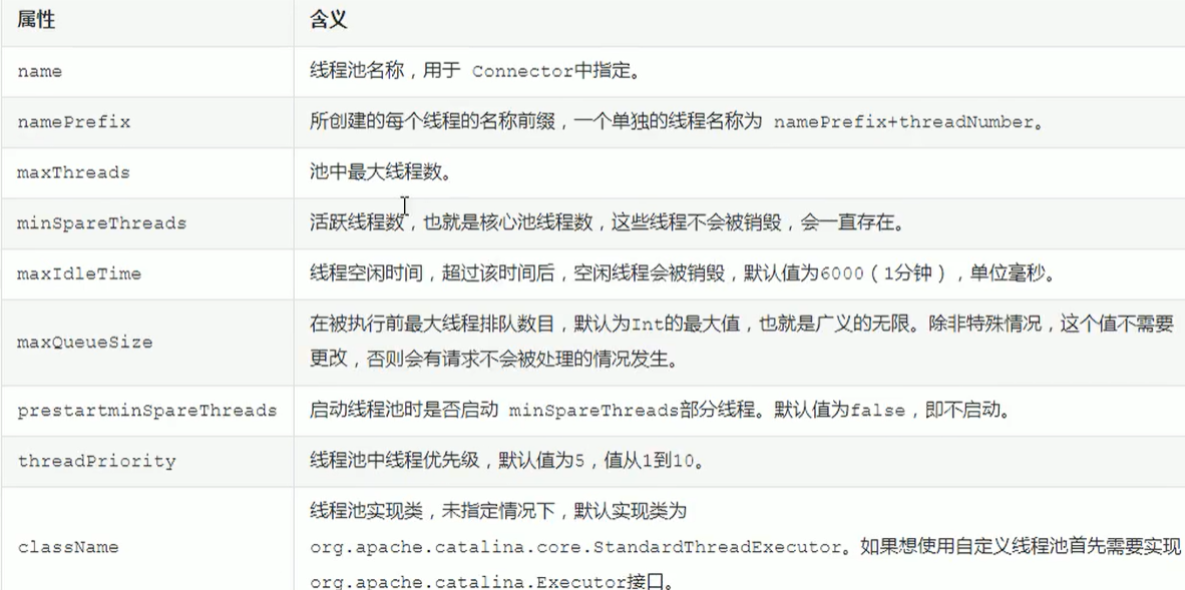 5) executor : 指定共享线程池的名称, 也可以通过maxThreads、minSpareThreads 等属性配置内部线程池。