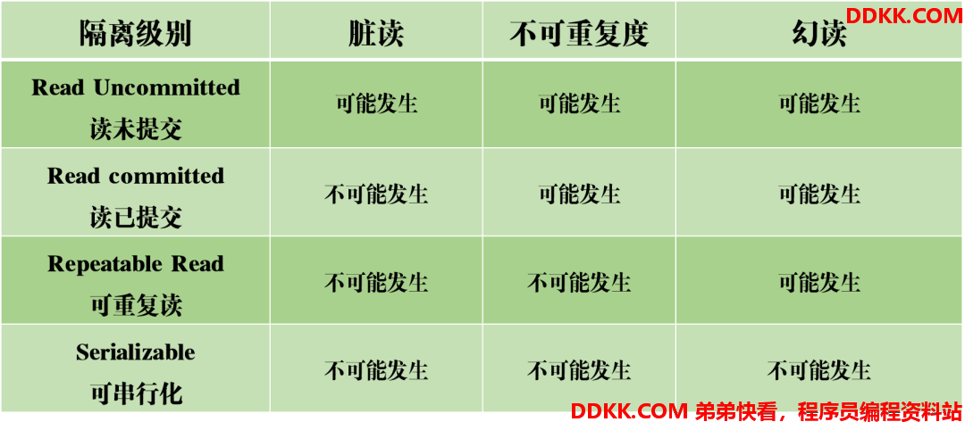 4、 可串行化是指完全串行地读,每次读取数据库中的数据时,都需要获得表级别的共享锁,读和写会相互阻塞;