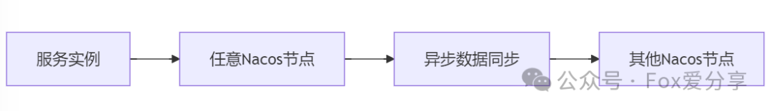 - 数据流向:服务注册请求发往任意节点 → 异步同步到集群
