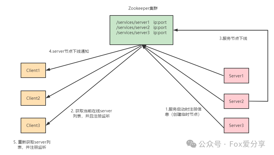 - 可将节点信息写入ZooKeeper上的一个ZNode。