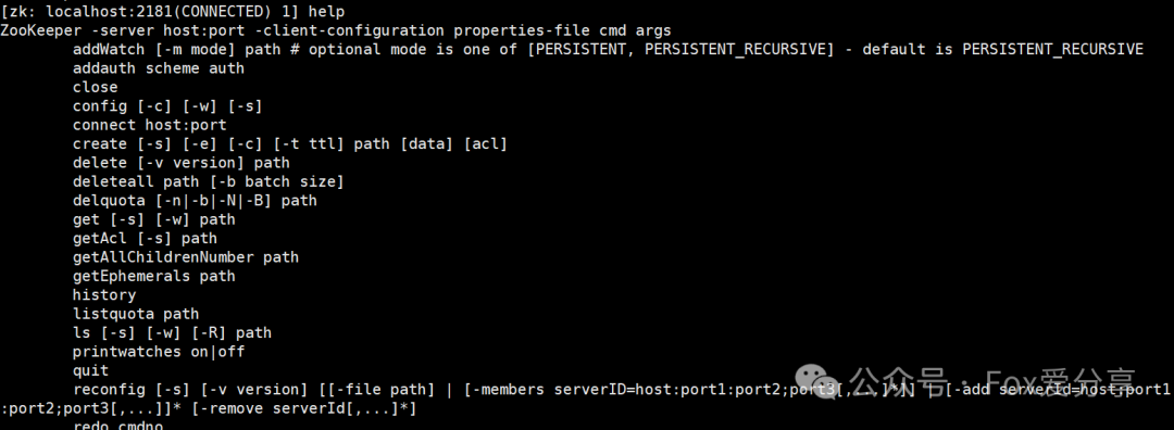 1 | bin/zkCli.sh# 连接远程的zookeeper serverbin/zkCli.sh -server ip:port |