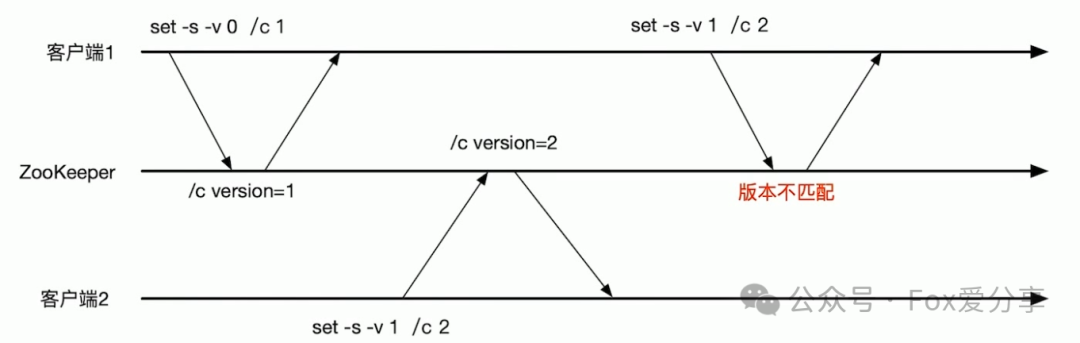 - 客户端1不知道/c已经被客户端⒉更新过了,还用过时的版本1是去更新/c,更新失败。如果客户端1使用的是无条件更新,/c就会更新为2,没有实现自增1。