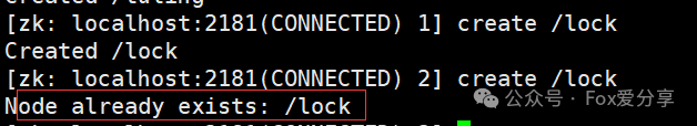1 | zkCli.shcreate –e /lockstat –w /lockcreate –e /lock |