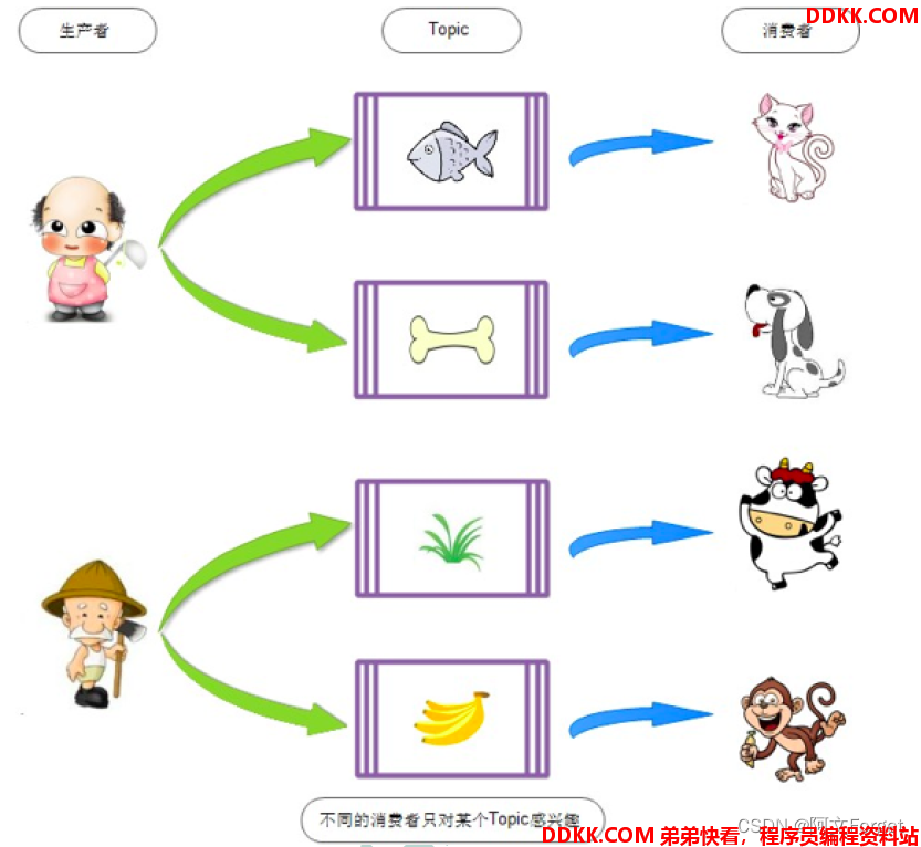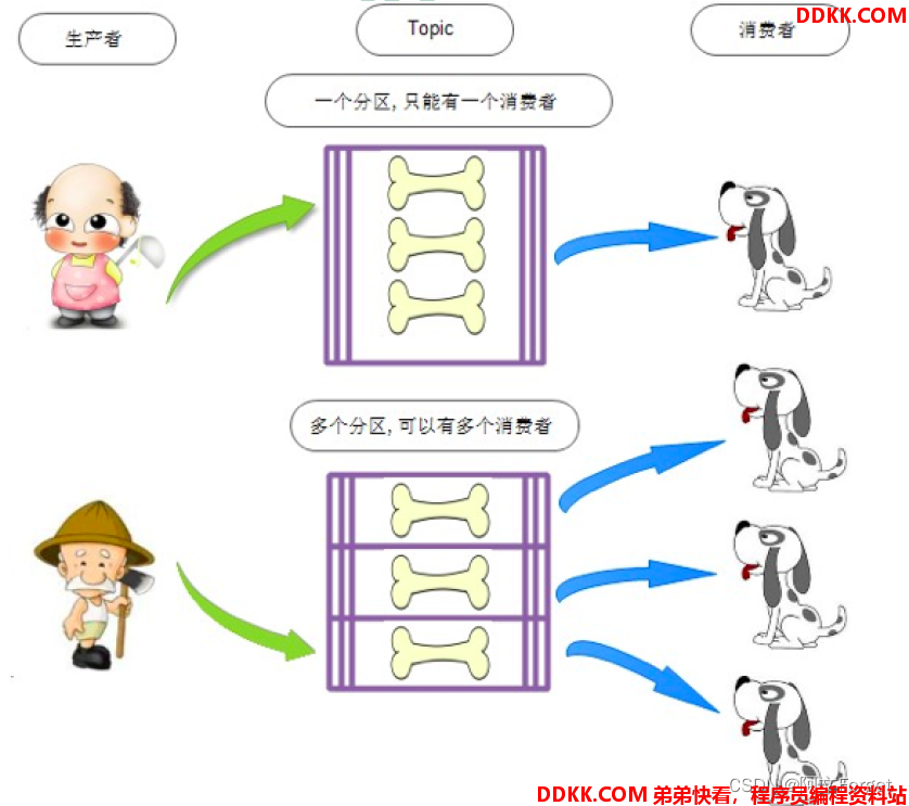 和消费一种Topic的消息。 producer:topic 1:n consumer:topic 1:1
