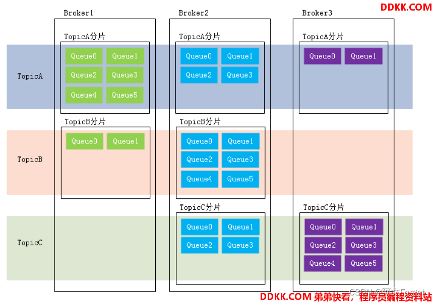 中,分片指的是存放相应Topic的Broker。每个分片中会创建出相应数量的分区,即Queue,每个