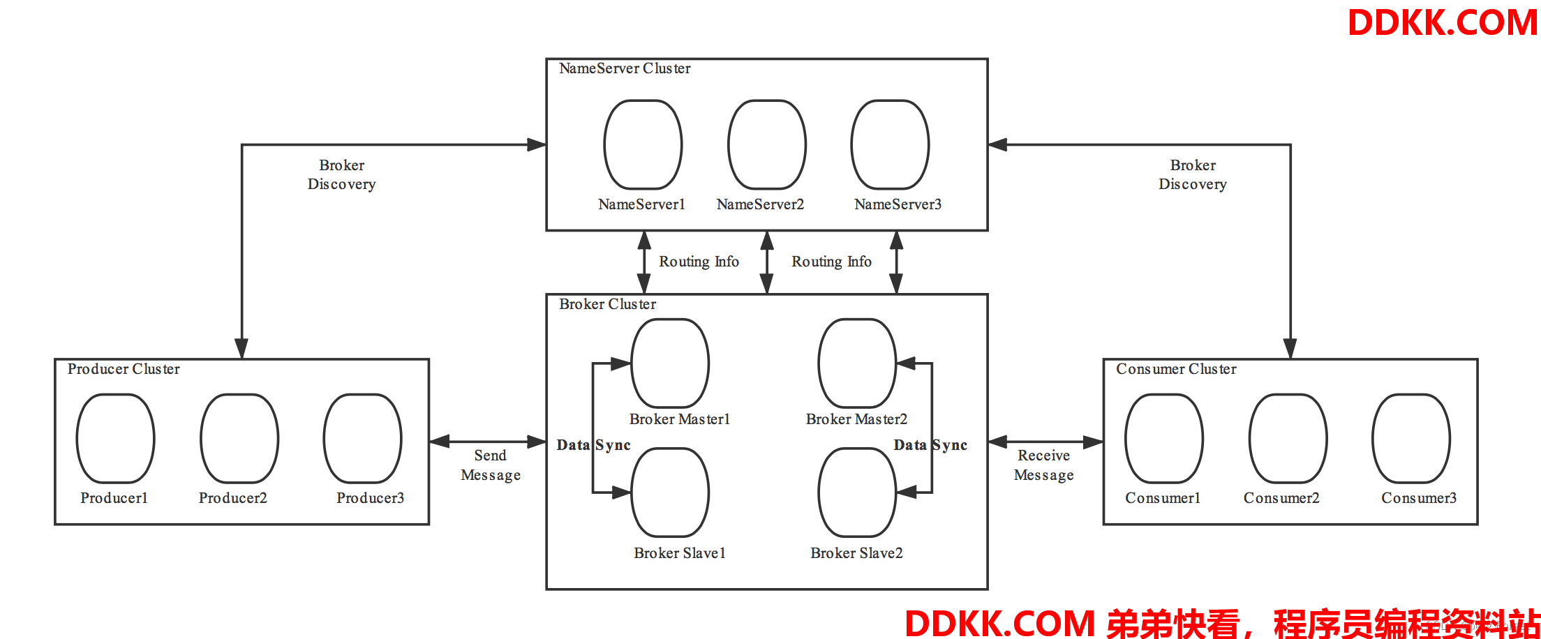 NameServer通常也是以集群的方式部署,不过,NameServer是无状态的,即NameServer集群中的各