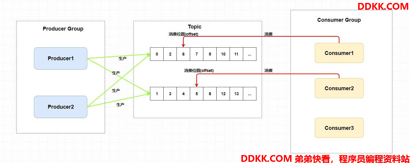 者的集合,这类Producer发送相同Topic类型的消息。一个生产者组可以同时发送多个主题的消息。