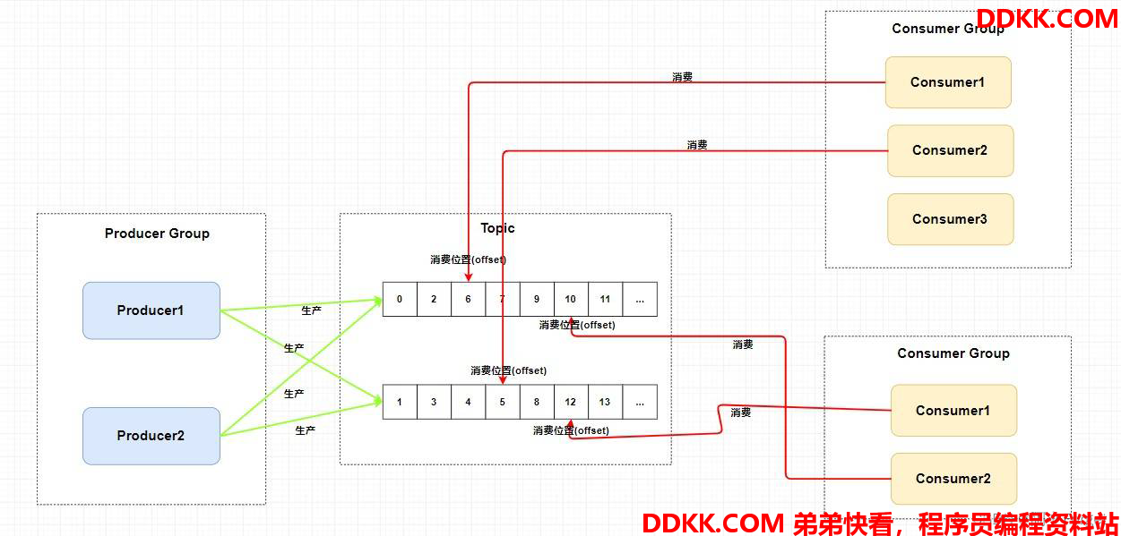 不过,一个Topic类型的消息可以被多个消费者组同时消费。