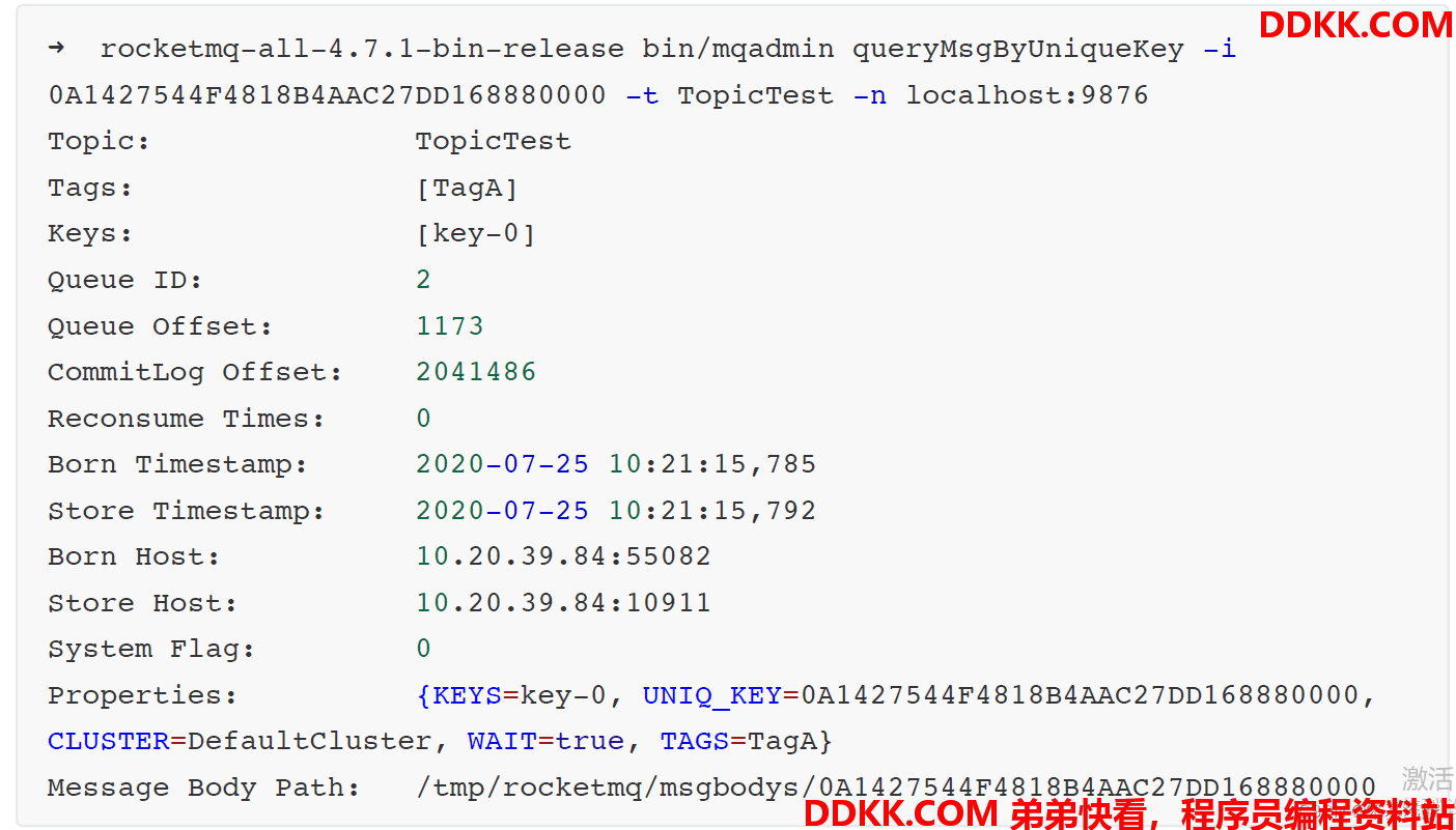 当消息到达Broker后,Broker也会自动生成一个MessageId(offsetMsgId)。msgId、offsetMsgId与key都
